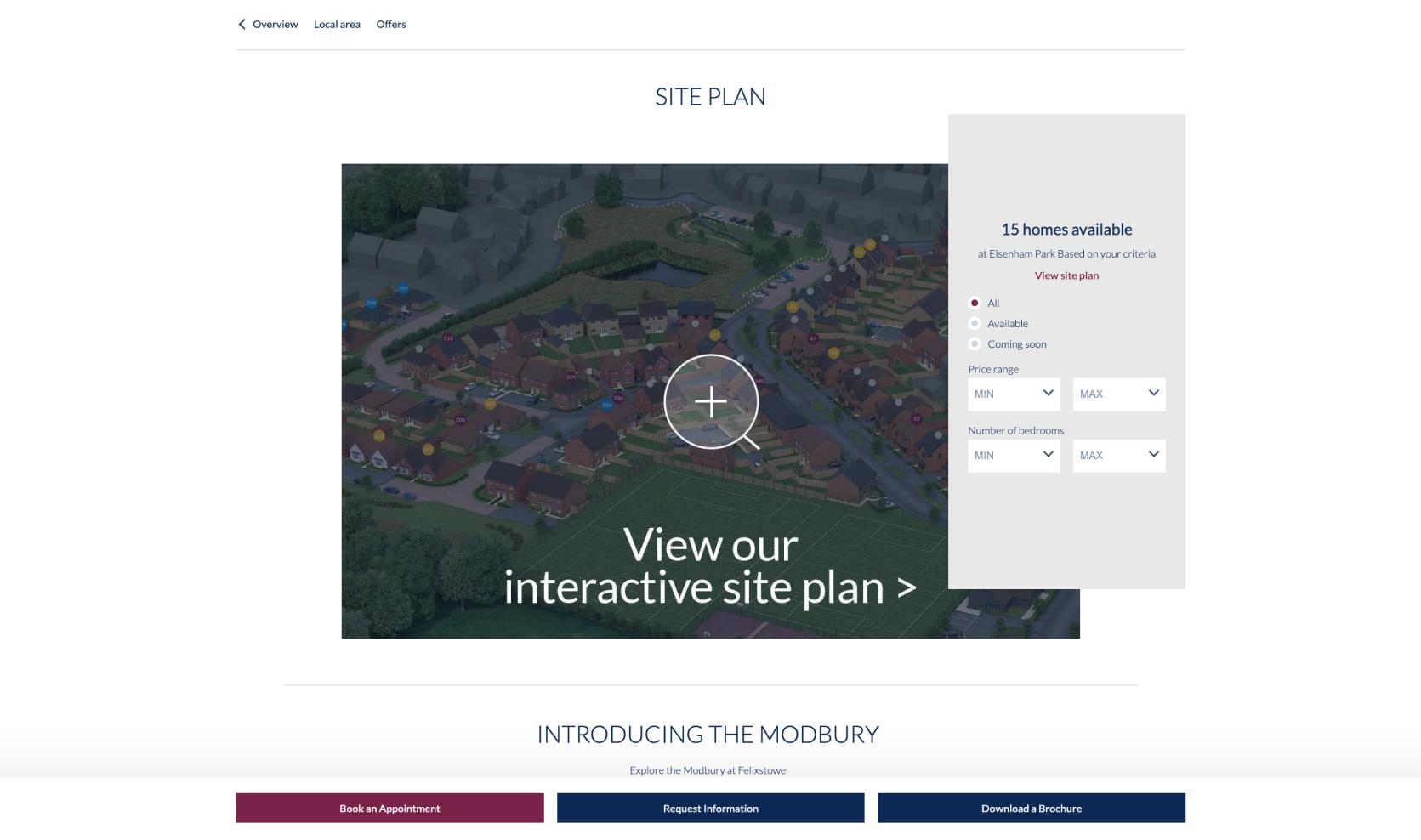 Being able to navigate the site plan ahead of the build completion is a great tool for the sales team to use in a marketing suite.