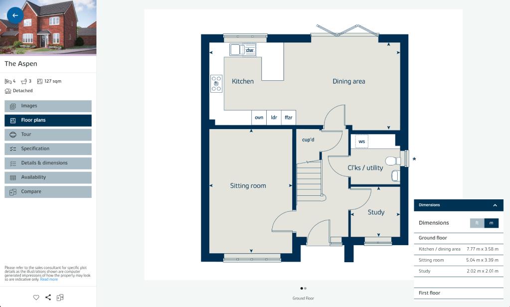 This was achieved by using a band of colour on the house style image that syncs with the plot number on the siteplan.